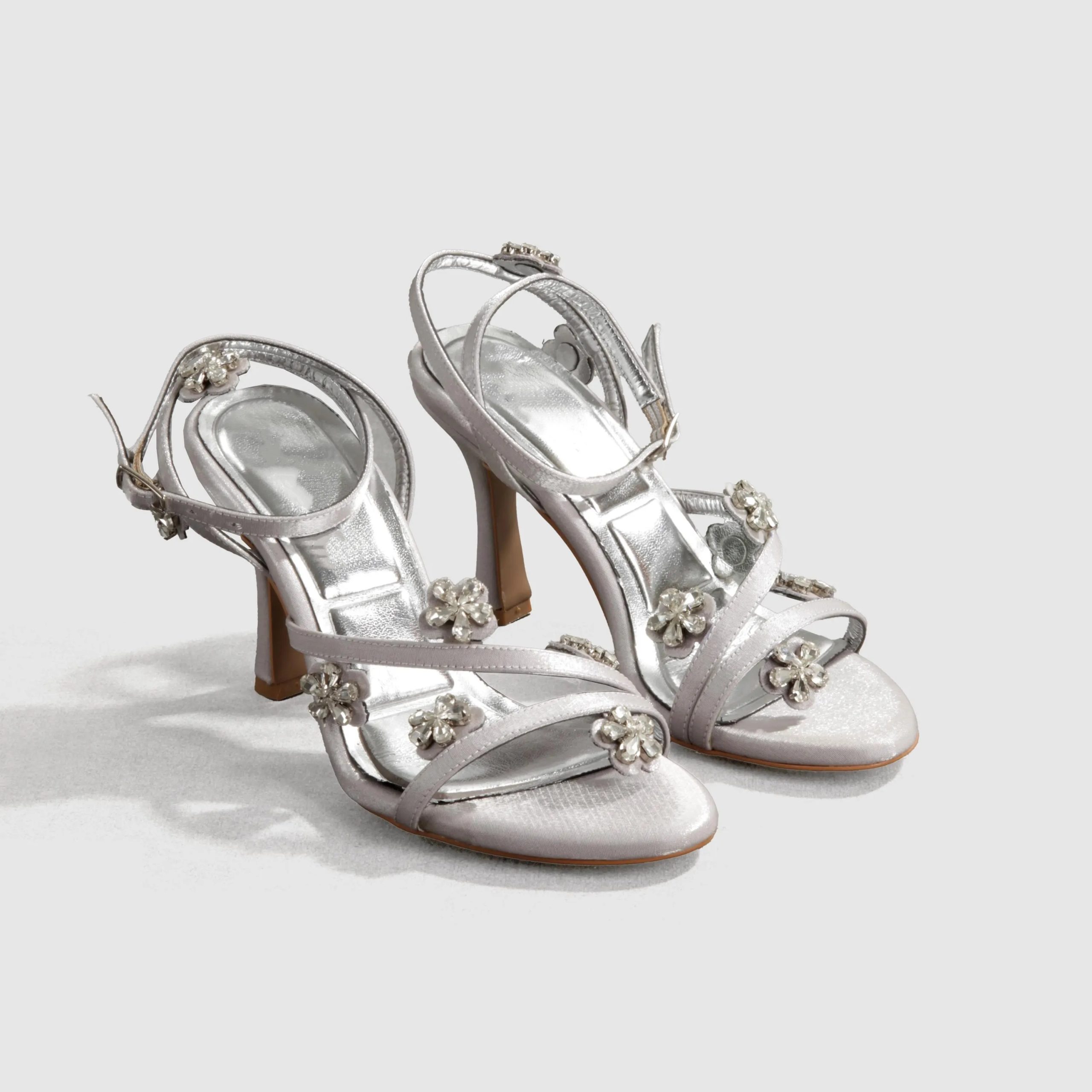 3D floral silver high-heeled sandals